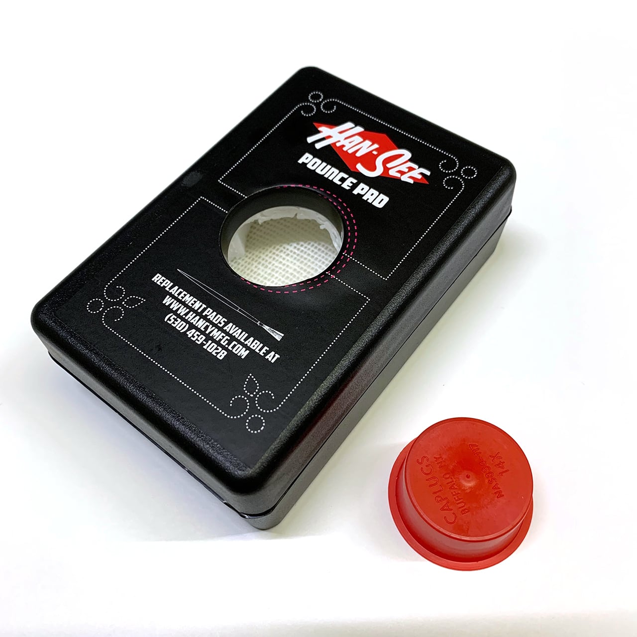 パウンスウィールで製作した下書きをセットして、上からパウンスパッドで軽く叩くようにチョーク粉をつけていきます